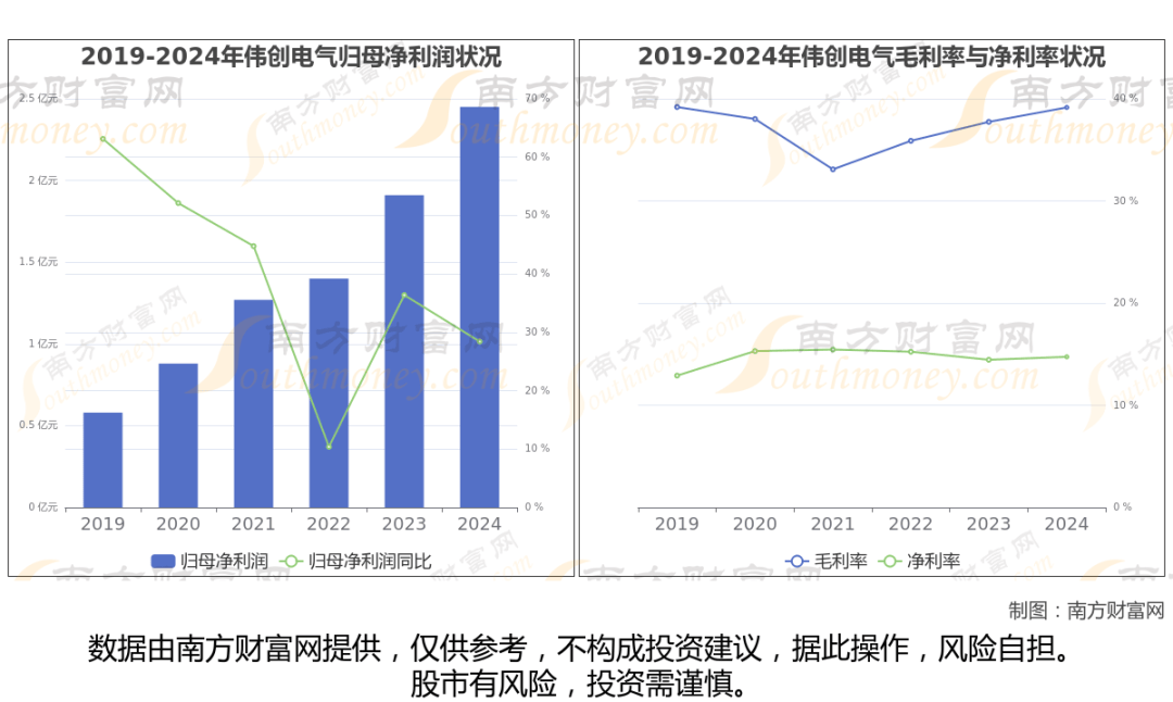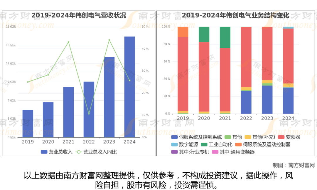 (如上图)2024年伟创电气公司停业总收入为16。4亿,同比增加25。7%,近5年复合增加率为30。12%。