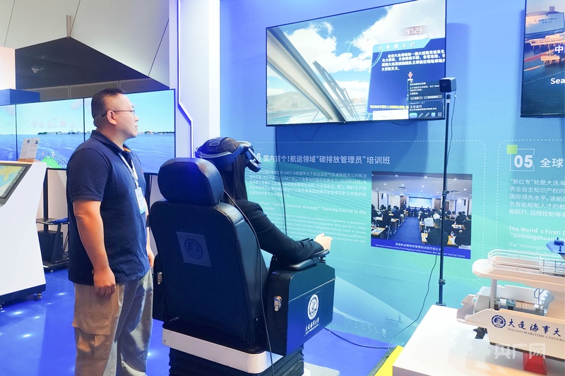 11月14日,2025大连航商大会现场,参会者体验专业级VR船舶模仿驾驶(央广网记者 刘培俊 摄)。