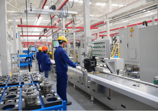 圣邦工程机械焦点零部件制制核心项目,同样一派火热。多组智能制制单位同时运转,机械臂精准抓取、加工的嗡鸣声此起彼伏,输送线带着半成品有序流转,每一条产线都以满负荷形态冲刺产能。